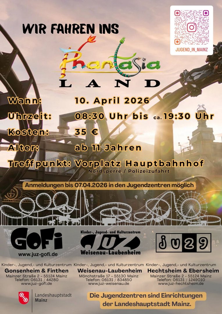 Anmeldungen möglich bis 07.04.26: im GoFi, Juz Hechtsheim/Ebersheim oder im Juz Weisenau/Laubenheim