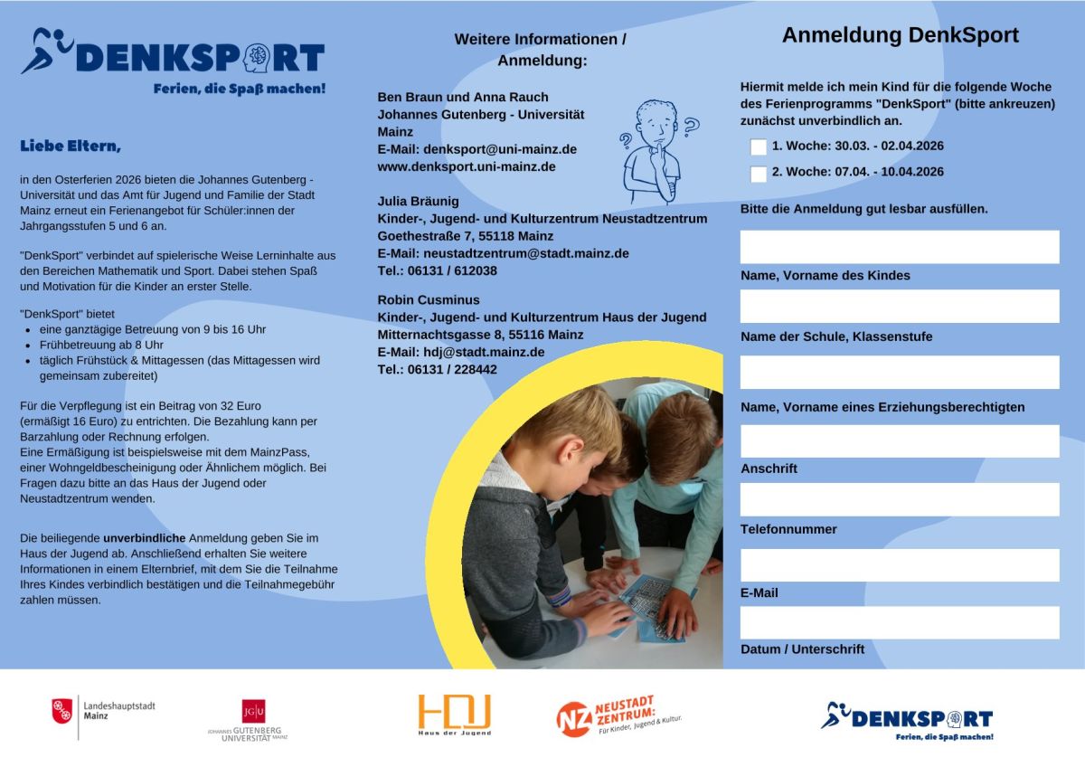 Weitere Informationen auch auf der DenkSport-Homepage: www.denksport.uni-mainz.de