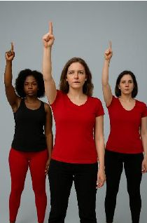 Am Ende des One Billion Rising Songs „Break the Chain“ gibt es die symbolische Abschlusspose, die Stärke, Solidarität und Widerstand aus-drückt. Alle Tänzer:innen stehen stark, stolz und aufrecht. Ein Arm (meist der rechte) wird kraftvoll nach oben gestreckt, mit geballter Faust, oder ausgestrecktem Zeigefinger.